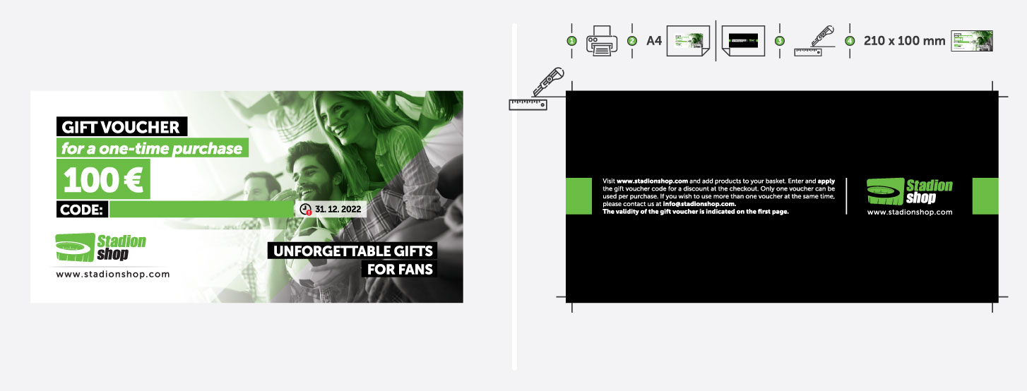 Einfach auf den Link klicken, Geschenkgutscheine bestellen und wir senden sie spätestens innerhalb von 1 Werktag an Ihre E-Mail-Adresse: go.stadionshop.com/